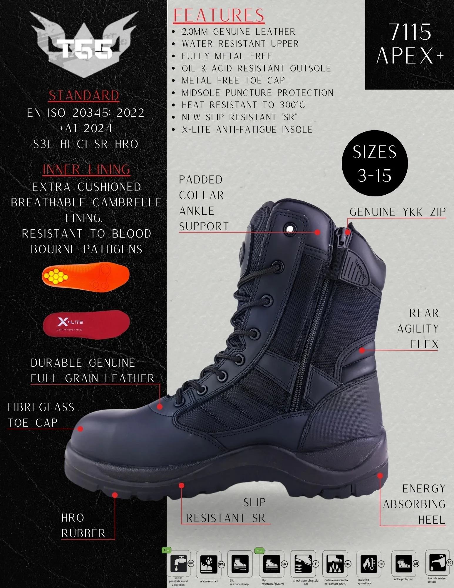 Designed for emergency service personnel, including police, ambulance, and fire-fighting teams, the Tuffking Apex has earned a reputation for being the most reliable, lightweight, and comfortable safety zip boot on the market. Whether you’re navigating challenging environments or working long shifts, this boot offers the ideal combination of protection, comfort, and sustainability.