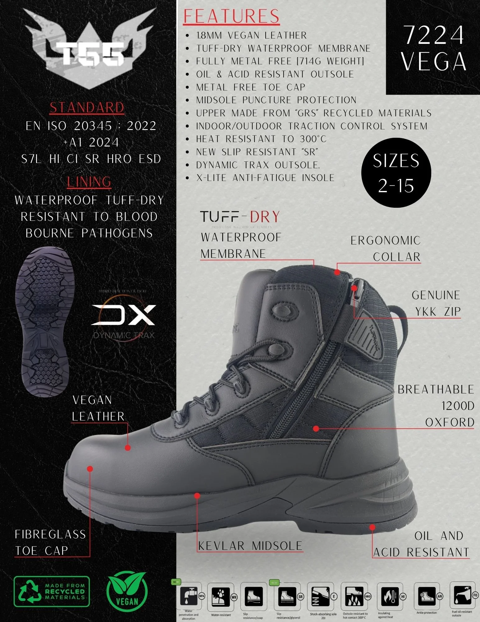 Introducing the Tuffking Vega, the latest addition to our vegan range of safety footwear, specially designed for emergency service workers who need lightweight, metal-free safety without compromising on comfort or protection.